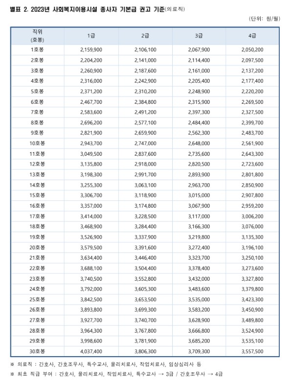 [2023년 의료직 종사자 기본급 권고기준]