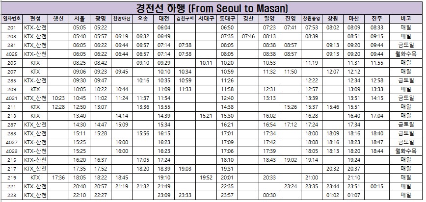 [경전선 KTX 열차 시간표]