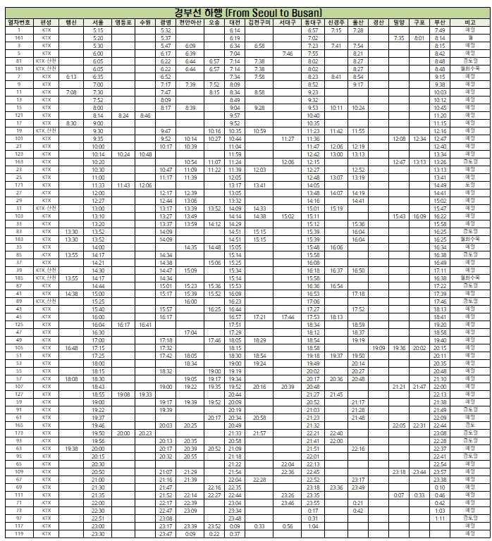 [경부선 KTX 열차 시간표]