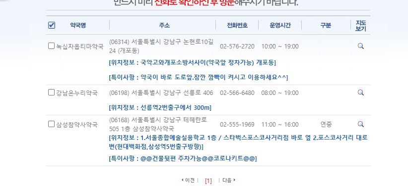 이렇게 간단한 검색으로 현재 영업중인 약국 주소를 확인 할수 있습니다.