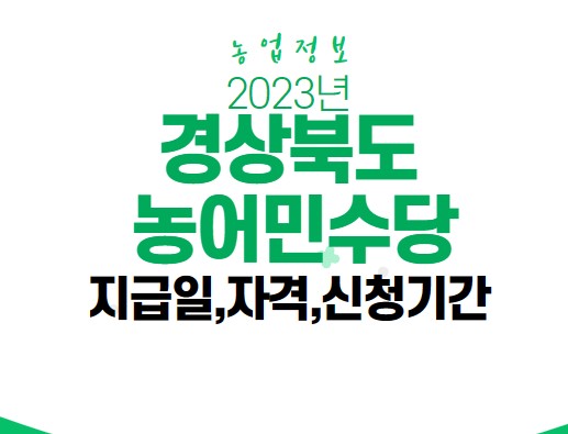 이상으로 2023년 경북 농민 공익수당 자격,지급시기,신청기간(경상북도 농어민수당 지급일 언제?)에 관해 확인해 보았습니다.