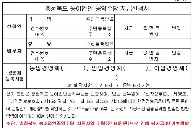 충청북도 농어업인수당 신청기간