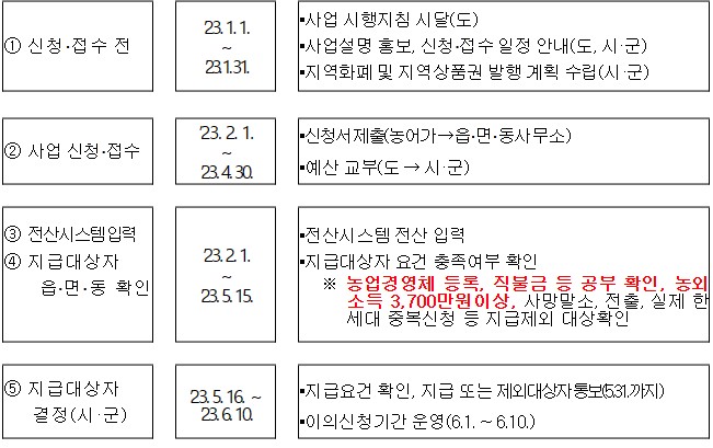 2023년 충북 농업인 공익 수당 지급시기(지급일)
