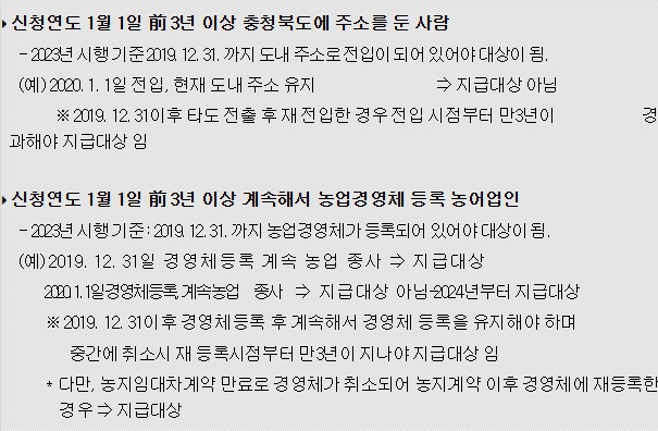 2023년 충북 농민수당 자격기준