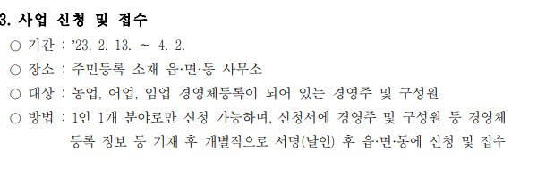 - 필요할 경우 종합소득금액증명원,가족관계증명서, 경영체등록정보 등