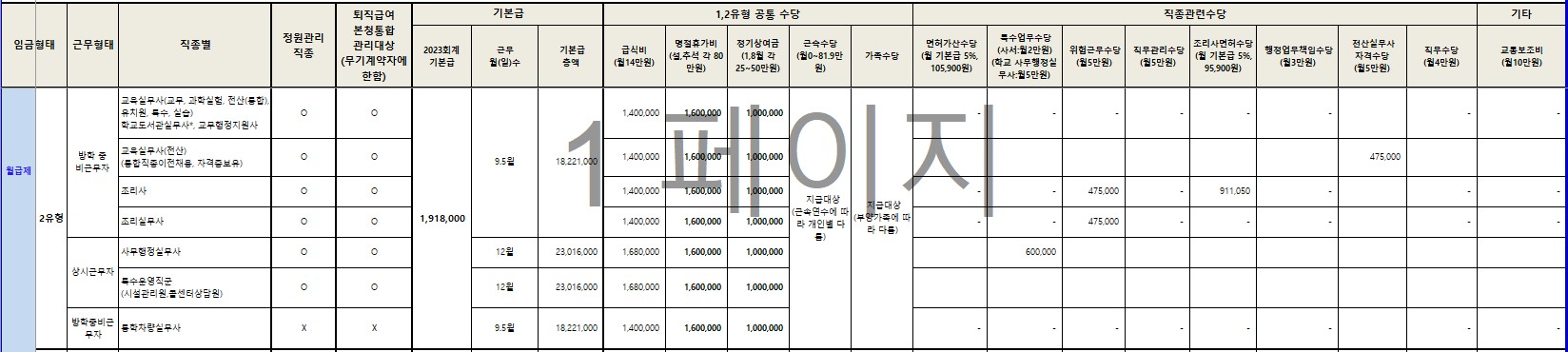 교육공무직은 임금이 월급제와 시급제로 크게 나뉩니다.