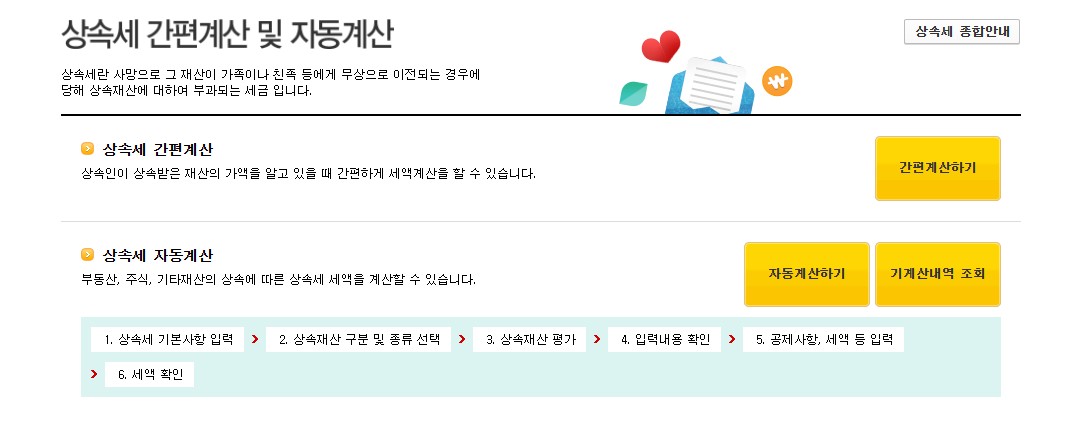 - 상속세 자동계산에서 간편계산 혹은 자동계산 선택