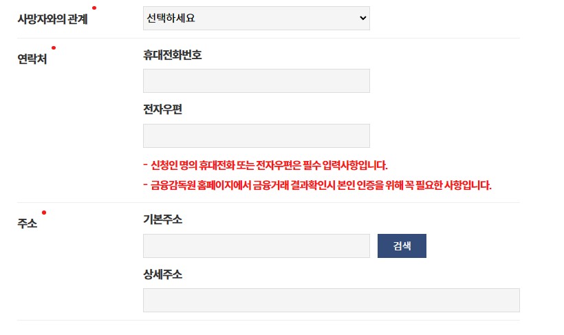 신청인과 사망자 정보를 확인하고 상세하게 적습니다.