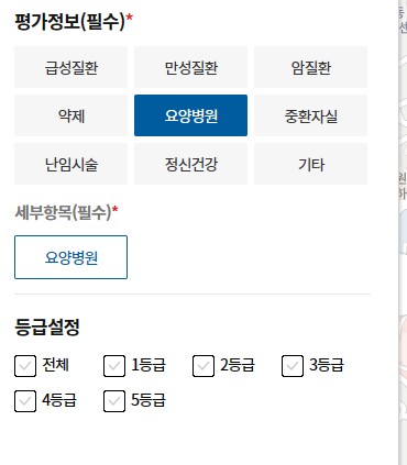 평가 정보에서 요양병원을 선택합니다.