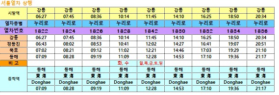 9. 동해~ 강릉 누리로 셔틀열차 시간표
