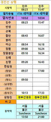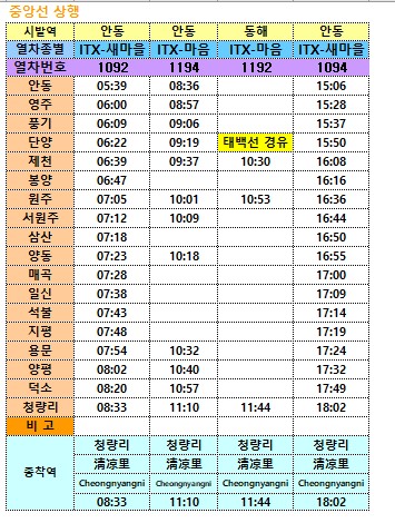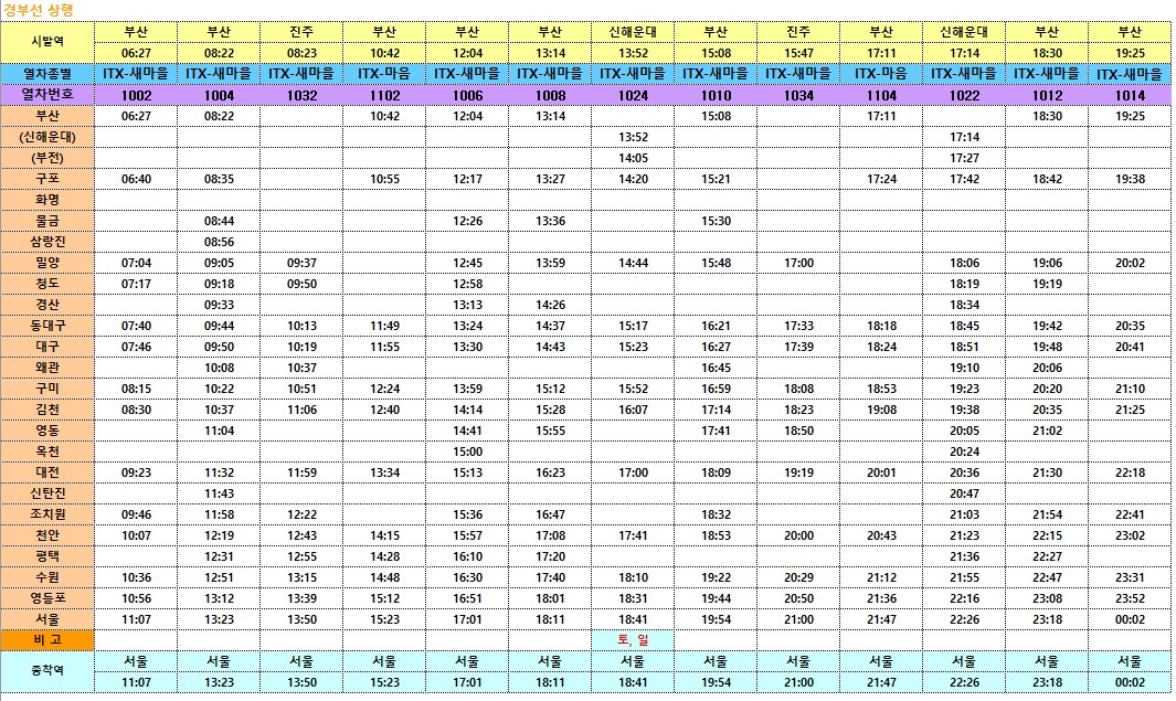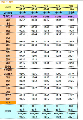 새마을호 상행 하행 열차 시간표는 아래에서 다운로드 하실 수 있습니다.