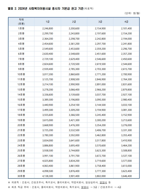 [2024년 의료직 종사자 기본급 권고기준]