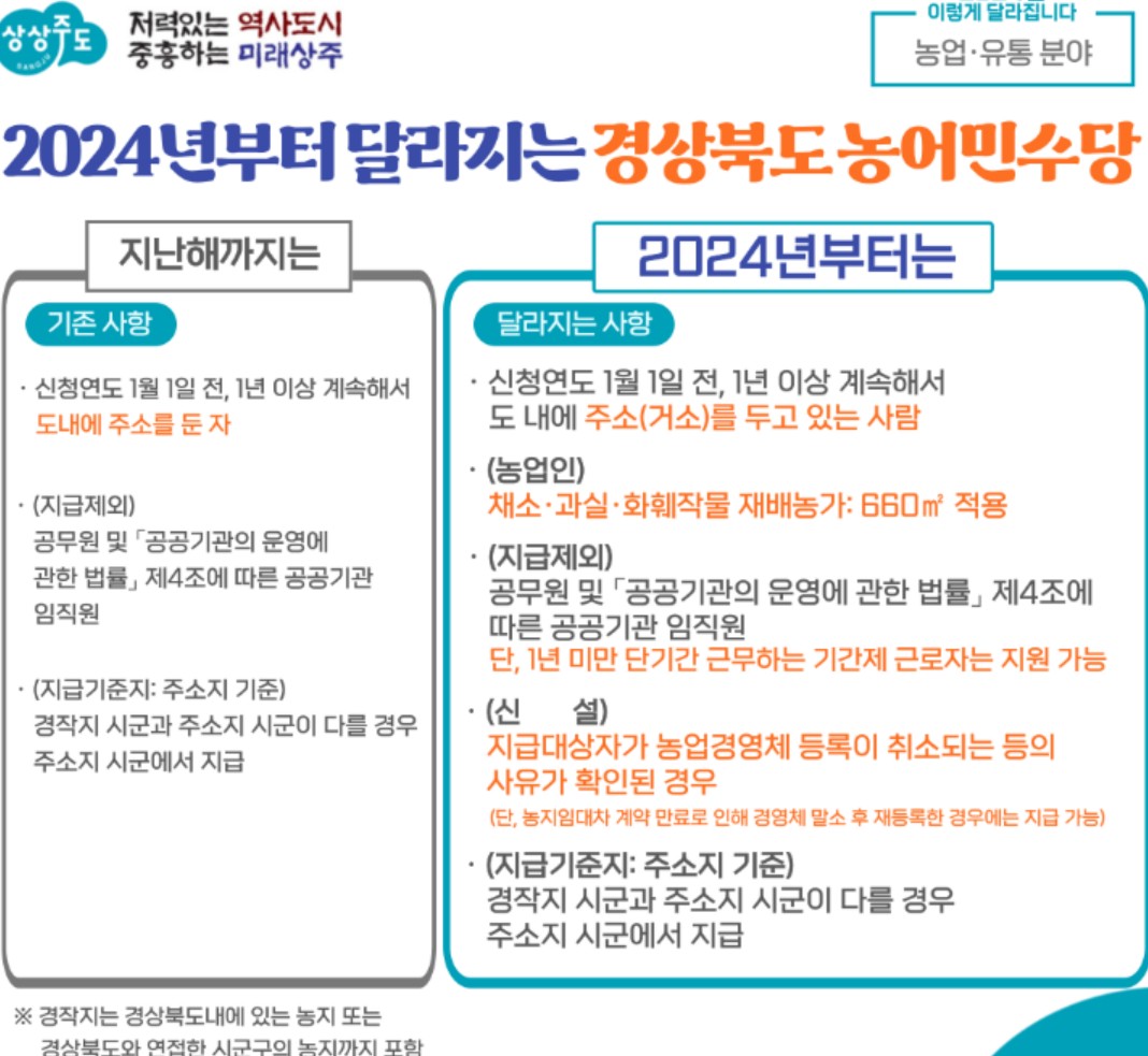 2024년 경상북도 농민수당 신청 자격| 신청기간 |지급일 | 지급 금액 | 경북 농어민 공익수당 지급시기
