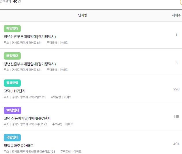 | 매입임대 | 경기도 평택시 서재로 36 | 청년신혼부부매입임대(경기평택시) | 3 |