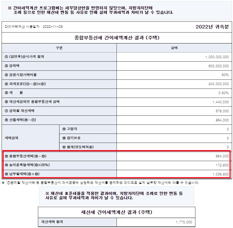 2022년 종합부동산세(종부세) 계산기 바로가기