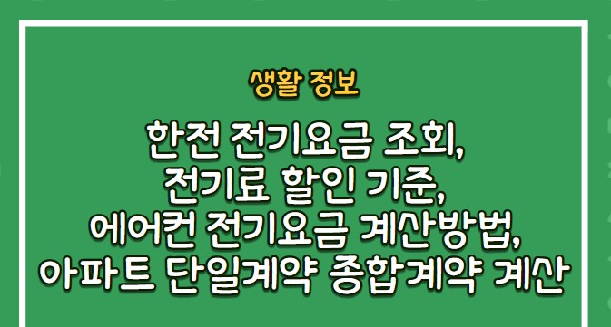 이상으로 한전 전기요금 조회,전기료 할인 대상 기준,에어컨 전기요금 계산방법,아파트 단일계약 종합계약 계산 비교에 관해 확인해 보았습니다.