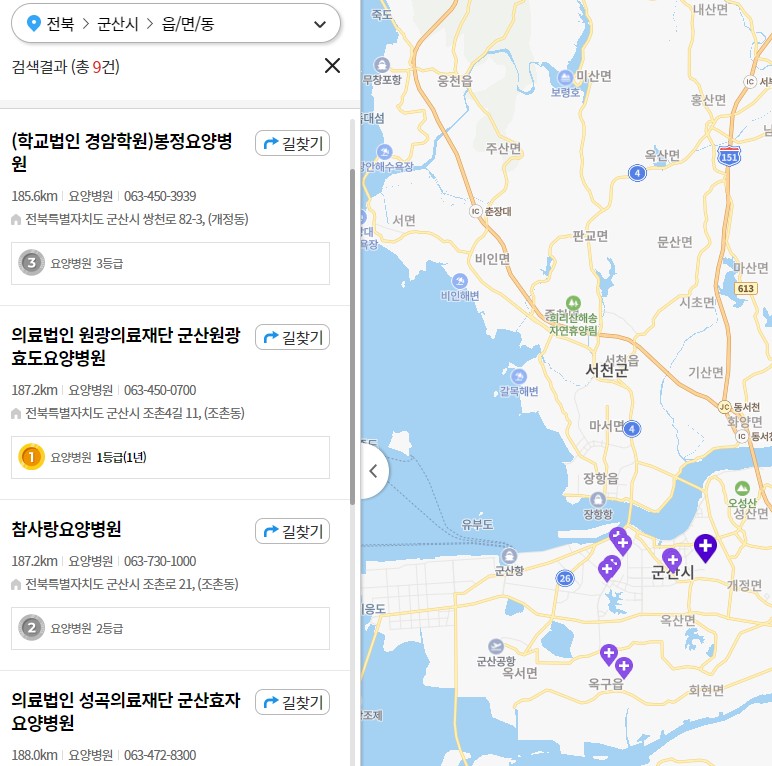 군산시의 요양병원 등급 확인하는 추천방법입니다.