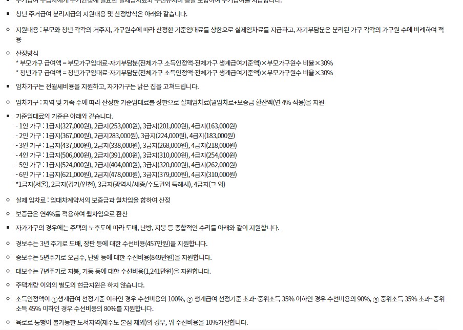주거급여는 자가가구와 임차가구 청년가구 3가지가 있습니다.
