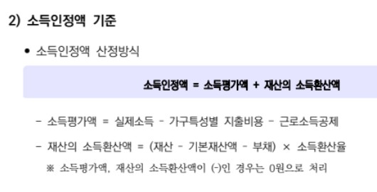 중위소득 50% 이하는 나의 근로소득과 재산 소득을 환산하여 합한 금액입니다.