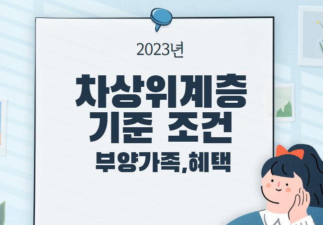 차상위 계층은 기초생활수급자가 될수 없는 복지 사각지대를 지원하기 위한 기준이기도 합니다. 2023년 차상위계층 기준과 부양의무자 조건, 재산,소득 기준 및 혜택에 대해 아래에서 확인해 보았습니다.