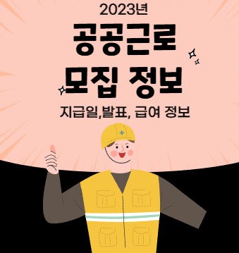 이상으로 2023년 공공근로 모집,급여 금액,지급일 월급날, 발표일 정보에 관해 확인해 보았습니다.