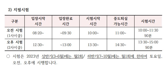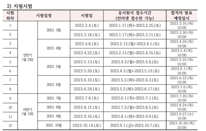 1년에 3~4번 정도 시험이 치뤄졌지만 2023년부턴 1달에 1번 정도, 총 연 12회 정도 시험이 치뤄질 예정입니다.