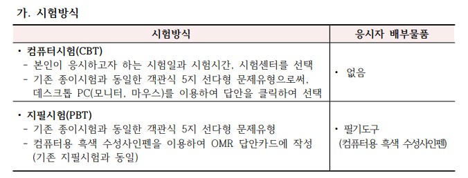 2023년부터 컴퓨터 시험 CBT로 출제되어 컴퓨터나 노트북등으로 마우스를 이용해 답안을 선택하는 방식으로 변환됩니다.