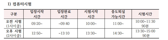 오전시험 | 09:20~09:40 | 10:00~11:30(90분) | 11:00~ |