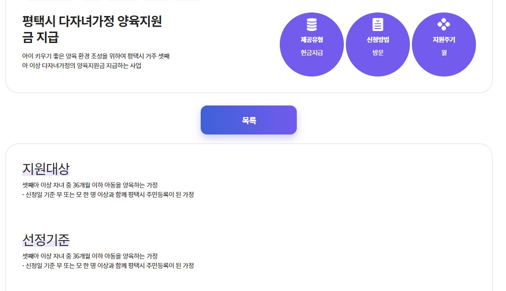 검색 결과에서 다자녀가정 지원대상과 선정 기준등을 자세히 확인합니다.