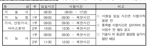 2023년 산업기사, 기사 시험시간