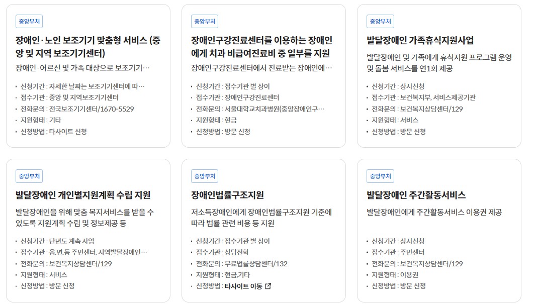 이렇게 내가 사는 지역과 소득에 맞추어 받을 수 있는 장애인 복지 혜택을 찾아볼 수 있습니다.