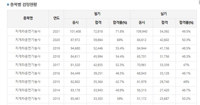 상반기에 치뤄지는 지게차운전기능사 시험일정입니다.