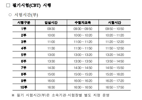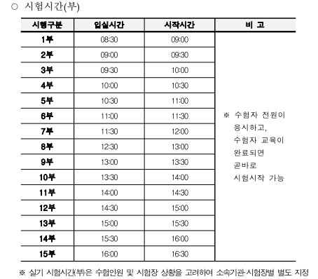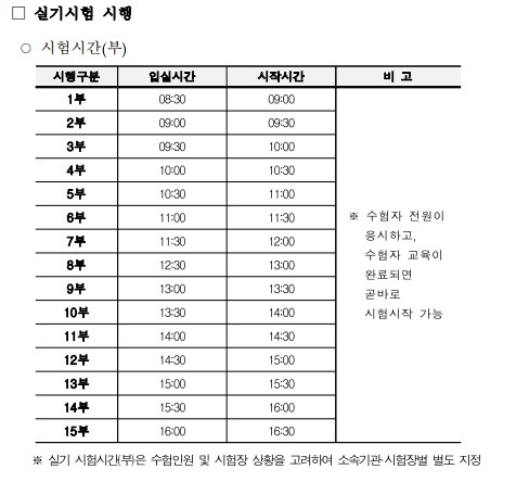 시행구분 | 입실시간 | 수험자교육 | 시험시간 |