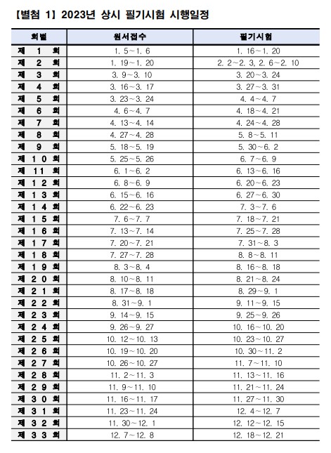회별 | 원서접수 | 실기시험 | 합격자발표 | 미시행일 |