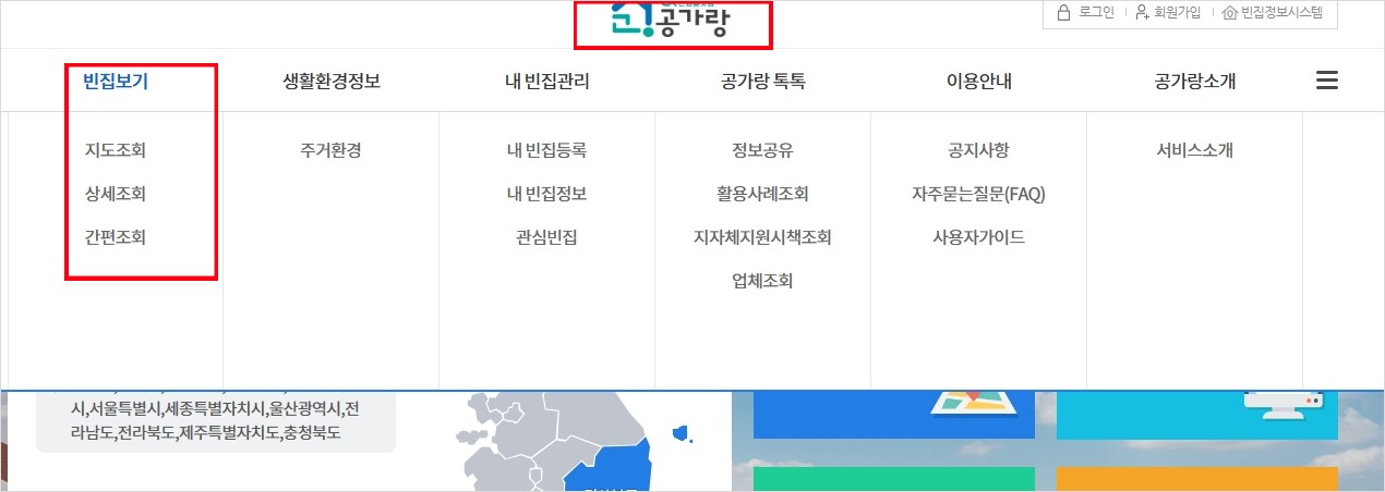 나의 빈집을 등록 할 수도 있습니다. 메뉴에서 '빈집보기'를 클릭해 지도 조회나,상세 조회 등을 선택 합니다.
