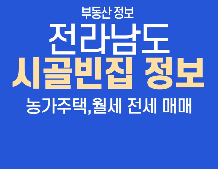 전라남도에 귀농귀촌을 생각중이거나 전남 빈집 등 농가주택을 구매하거나 월세로 살 생각이 시라면 전라남도 빈집 정보,농가주택 매매,임대(전남 월세 싼곳, 무상) 정보를 아래에서 자세히 확인 하실 수 있습니다.