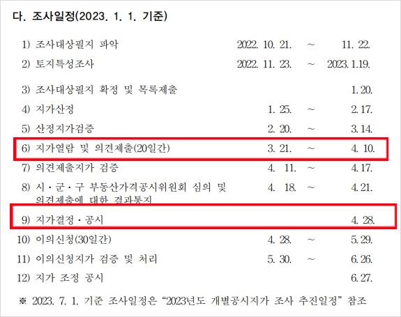 이후 4월 28일부터 지가가 결정되어 공시될 예정입니다.