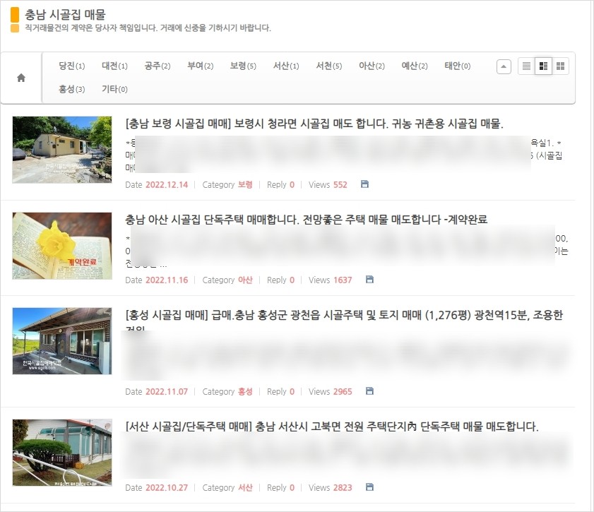 충남 시골집 매물 정보