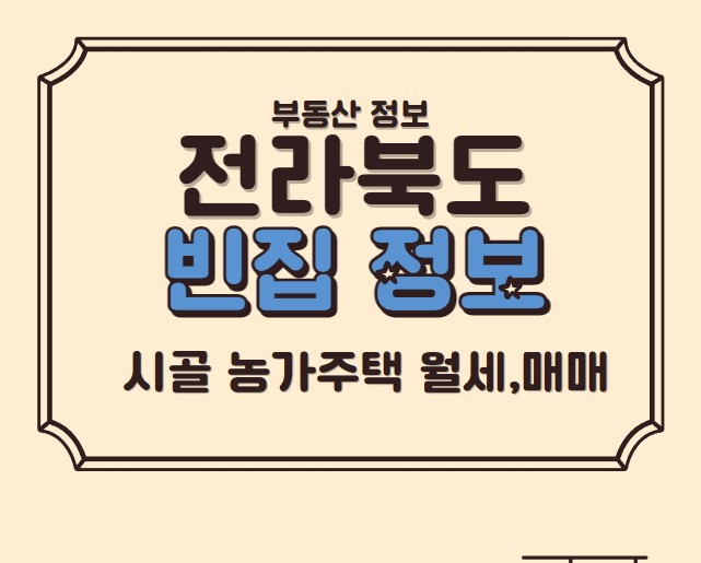 전라북도에 귀농귀촌을 하거나 시골 빈집 매매에 관심이 많거나 월세나 전세로 싼곳을 찾아 임대 하려는 분들은 가격이 얼마일지 궁금하실텐데요. 전라북도 빈집 정보,농가주택 매매,임대(전북 시골 월세 싼곳,무상) 조회에 대해 아래에서 자세히 확인 하실 수 있습니다.