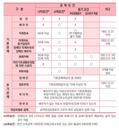 - 연간 소득금액이 100만원이하(근로소득만 있을 경우 500만원 이하)